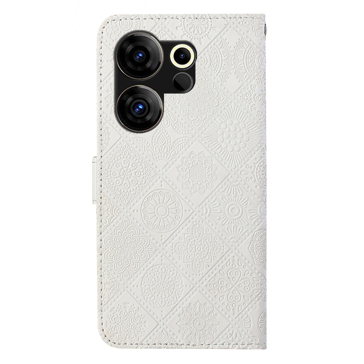 Funda Cuero Patrón En Relieve Estilo Étnico para Tecno Camon 20 Premier (Blanco)