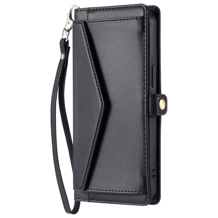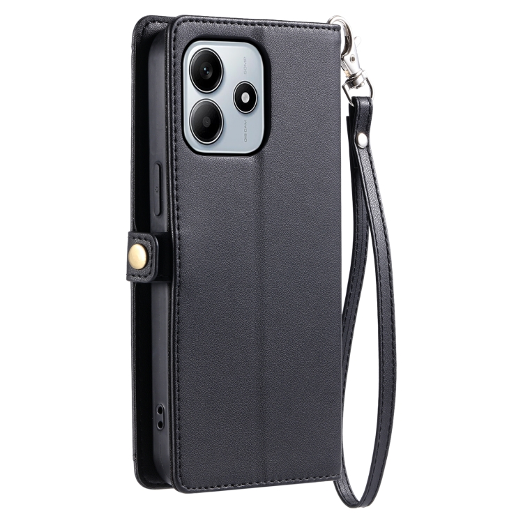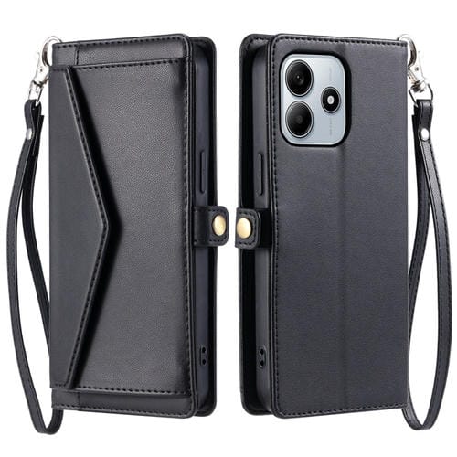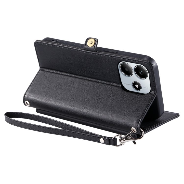 Funda de Cuero con Ranura para Múltiples Tarjetas para Xiaomi Redmi Note 14 5G con Cordón (Negro)