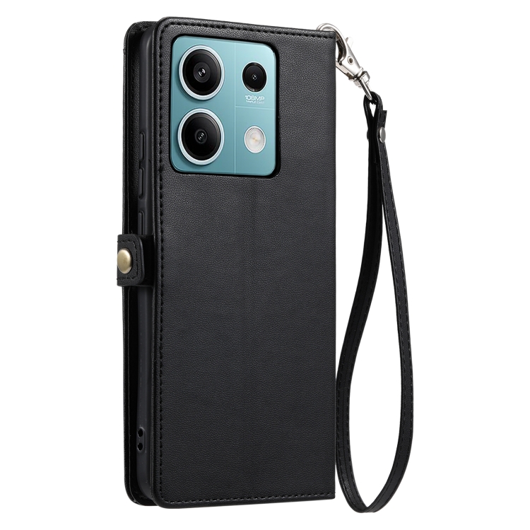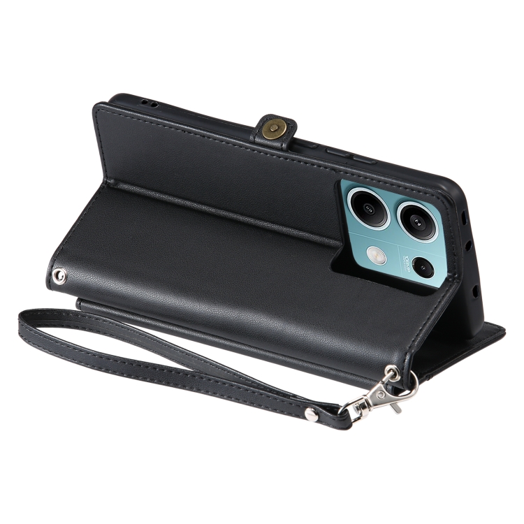 Funda de Cuero con Ranura para Múltiples Tarjetas y Billetera Global para Redmi Note 13 5G con Cordón (Negro)