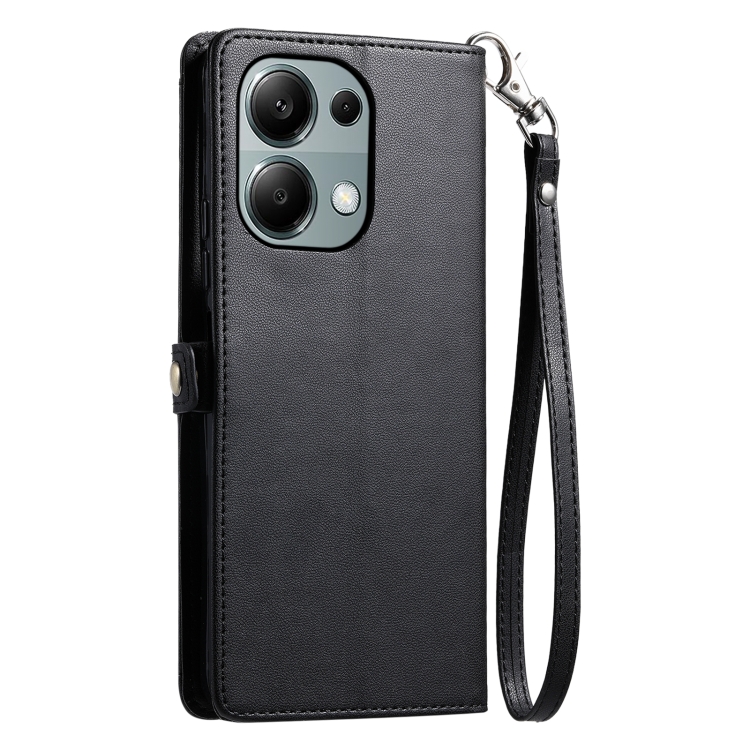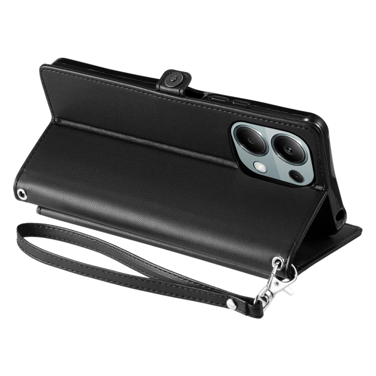 Funda de Cuero con Ranura para Múltiples Tarjetas y Billetera Global para Redmi Note 13 Pro 4G con Cordón (Negro)