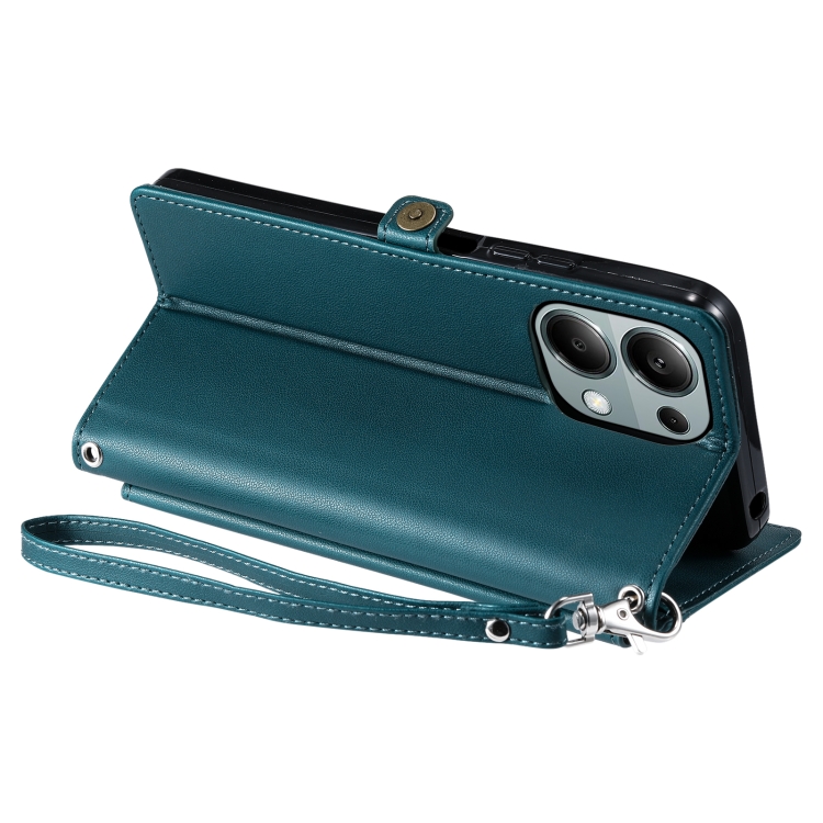 Funda de Cuero con Ranura para Múltiples Tarjetas y Billetera Global para Redmi Note 13 Pro 4G con Cordón (Verde)