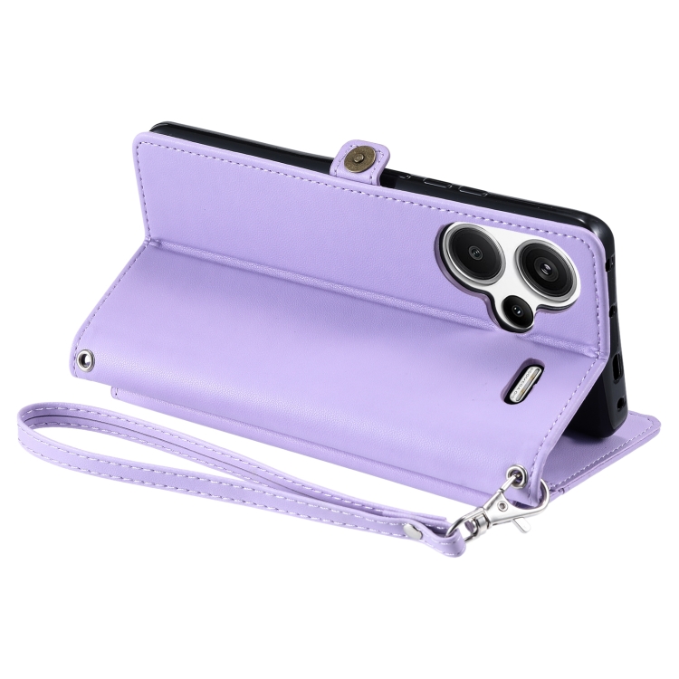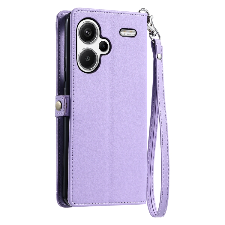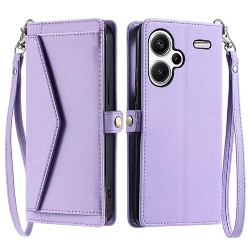Funda de Cuero con Ranura para Múltiples Tarjetas y Billetera Global para Redmi Note 13 Pro+ 5G con Cordón (Morado)