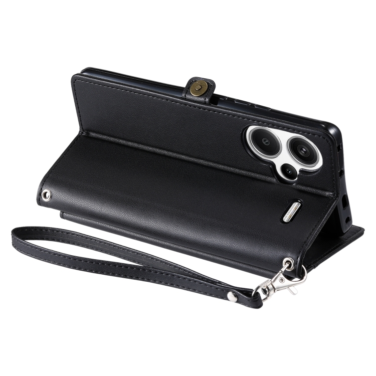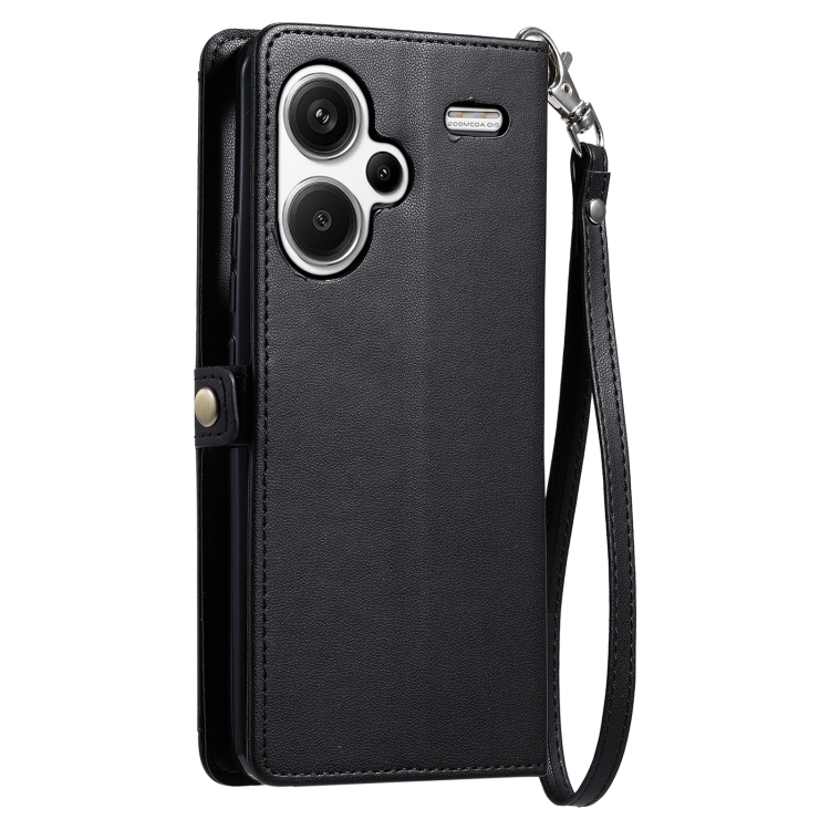Funda de Cuero con Ranura para Múltiples Tarjetas y Billetera Global para Redmi Note 13 Pro+ 5G con Cordón (Negro)