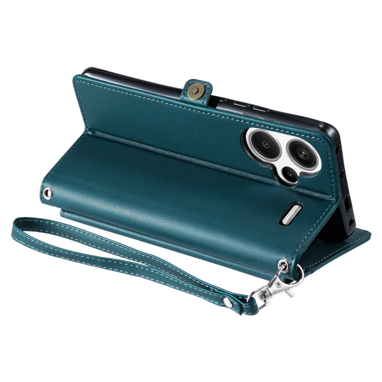 Funda de Cuero con Ranura para Múltiples Tarjetas y Billetera Global para Redmi Note 13 Pro+ 5G con Cordón (Verde)