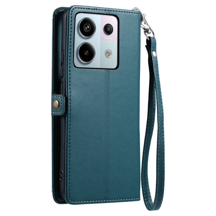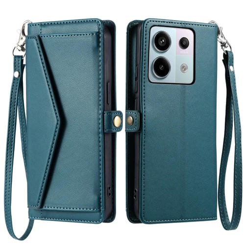 Funda de Cuero con Ranura para Múltiples Tarjetas y Billetera Global para Redmi Note 13 Pro 5G con Cordón (Verde)