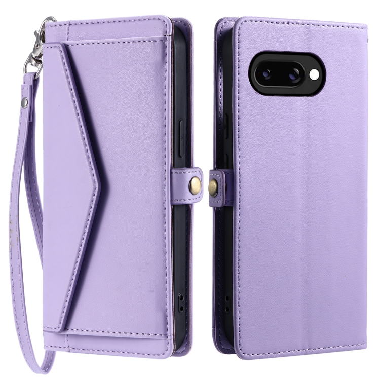 Funda de Cuero para Google Pixel 9A con Ranura para Tarjetas y Cordón (Morado)