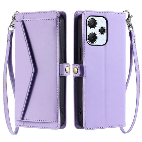 Funda de Cuero con Ranura para Múltiples Tarjetas y Cordón para Redmi Note 12R (Morado)