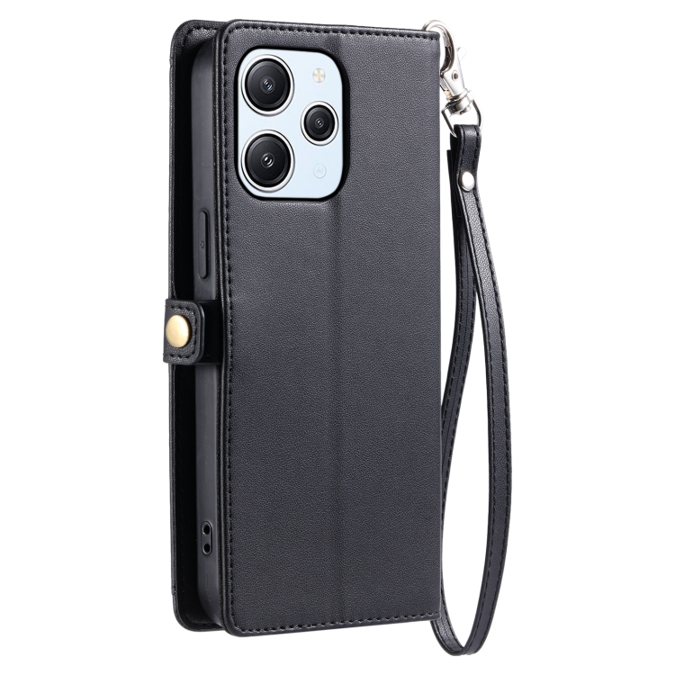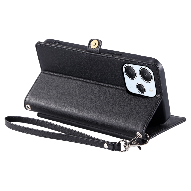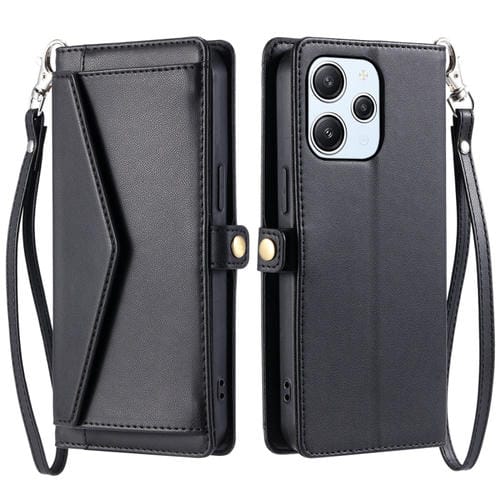 Funda de Cuero con Ranura para Múltiples Tarjetas y Cordón para Redmi Note 12R (Negro)