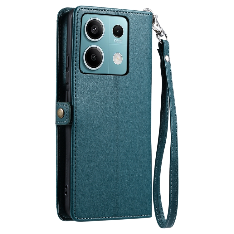 Funda de Cuero con Ranura para Múltiples Tarjetas y Cordón para Redmi Note 13 5G Global Wallet (Verde)