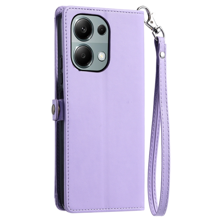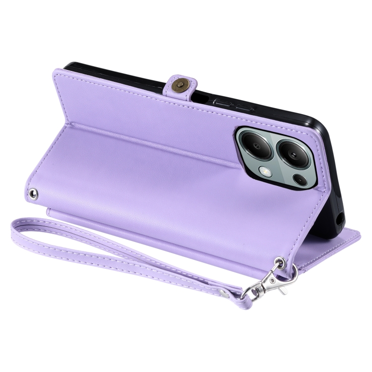 Funda de Cuero con Ranura para Múltiples Tarjetas y Cordón para Redmi Note 13 Pro 4G Global Wallet (Morado)