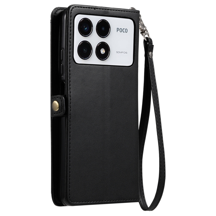 Funda de Cuero con Ranura para Múltiples Tarjetas y Cordón para Xiaomi Poco F6 Pro (Negro)