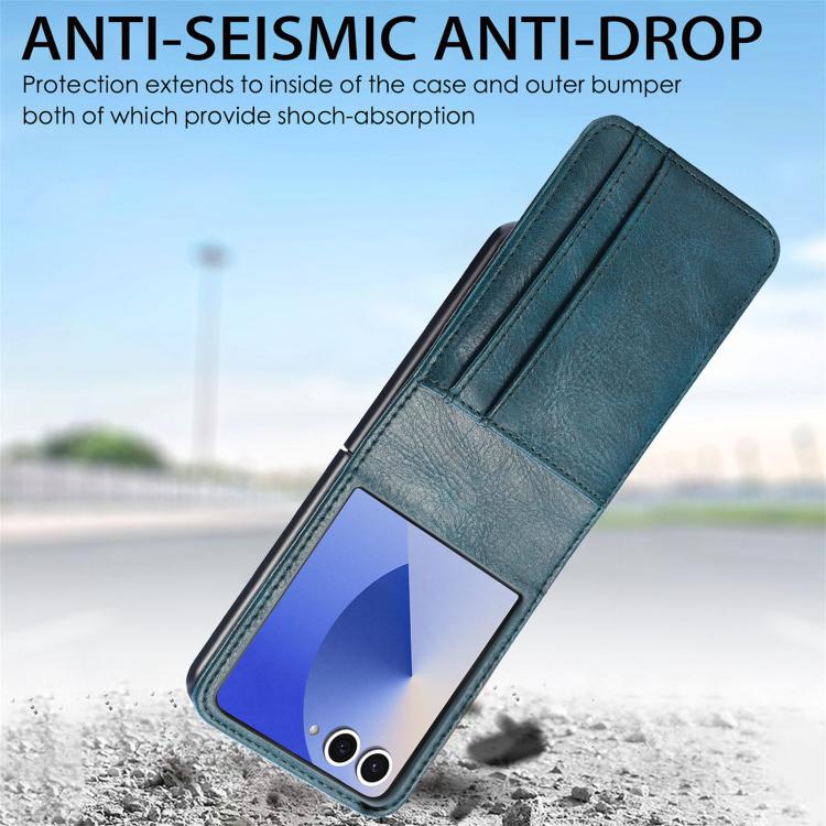 Funda de cuero con ranura para tarjetas y tapa vertical para Samsung Galaxy Z Flip7 5G (verde)