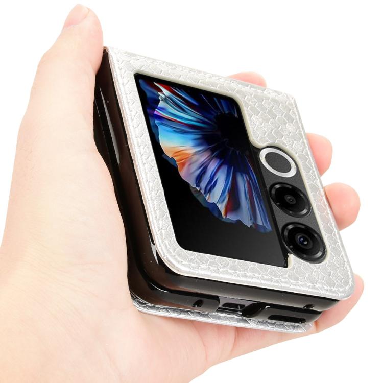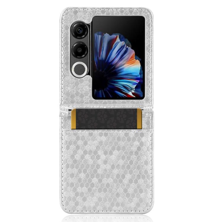 Funda de Cuero para ZTE Nubia Flip2 A404Zt con Ranura para Tarjetas y Textura de Panal (Plateada)