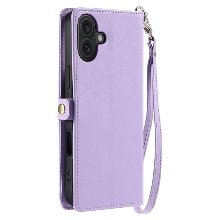 Funda de Cuero para iPhone 16 con Ranura para Tarjetas y Billetera (Morado)
