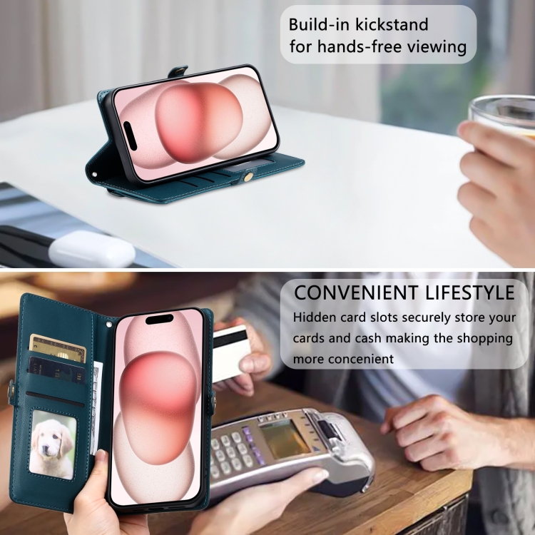 Funda de Cuero para iPhone 16 con Ranura para Tarjetas y Billetera (Verde)