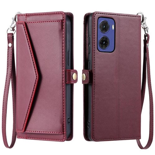 Funda de Cuero para Motorola Moto G05 con Ranura para Tarjetas y Cordón (Rojo Vino)
