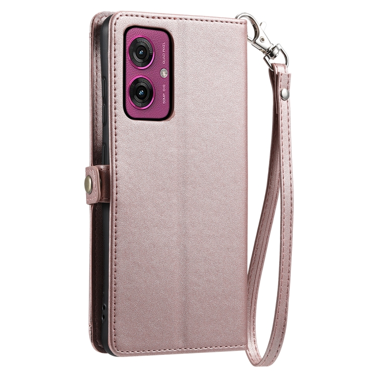 Funda de Cuero para Motorola Moto G55 con Ranura para Tarjetas y Cordón (Oro Rosa)