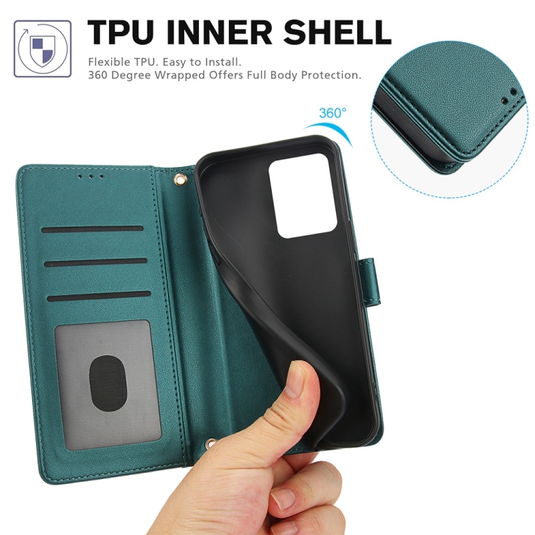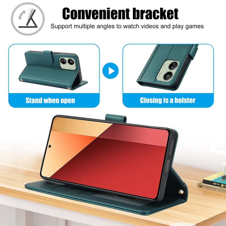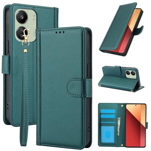 Funda de Cuero con Ranuras para Tarjetas y Diseño de Piel Sintética con Cordón Doble para Redmi 13C 4G / Poco C65 / Poco M6 5G (Verde)