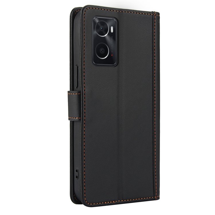 Funda de Cuero con Ranuras para Tarjetas y Diseño de Piel Sintética de Color Puro para Oppo A36 4G / A76 4G / A96 4G / K10 4G con Cordón Doble (Negro)