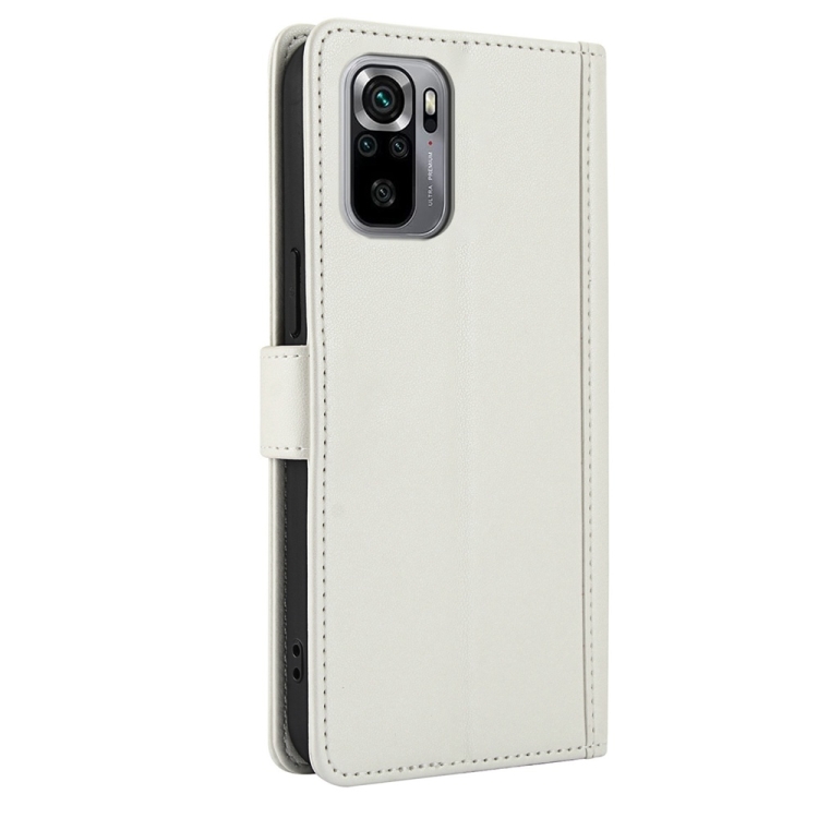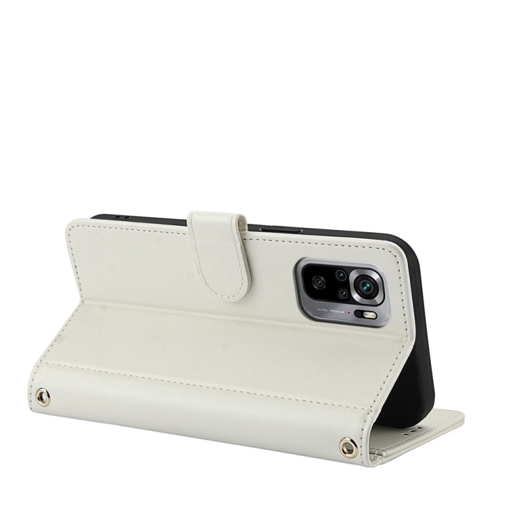 Funda de Cuero con Ranuras para Tarjetas y Diseño de Piel Sintética de Color Puro para Redmi Note 10 4G/Note 10S 4G con Cordón Doble (Blanco)