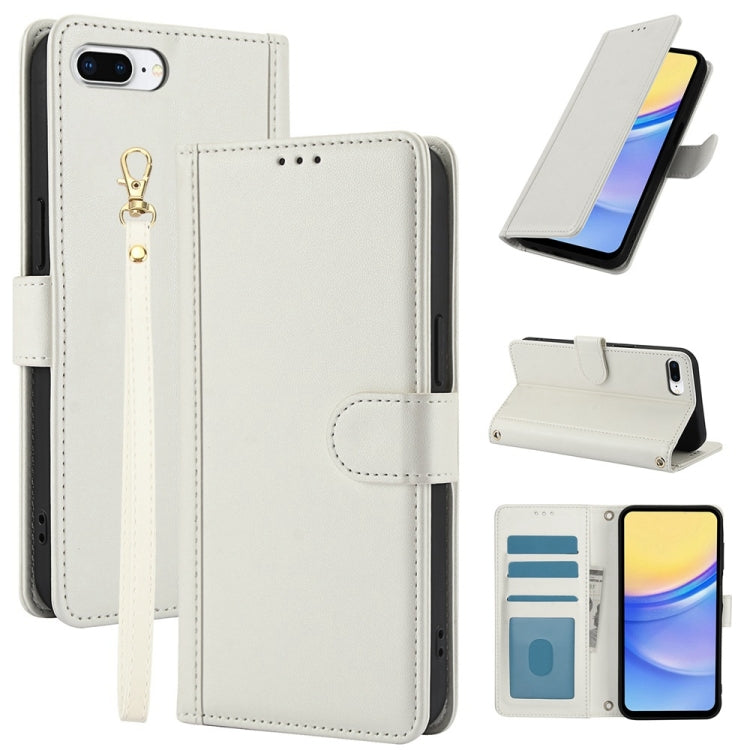 Funda de Cuero para iPhone 7 Plus/8 Plus con Ranuras para Tarjetas y Doble Cordón (Blanco)