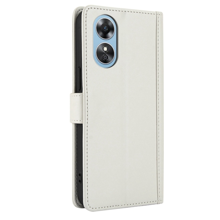 Funda de Cuero con Ranuras para Tarjetas y Doble Cordón para Oppo A17 4G Global/A17K Skin Feel Pure Color (Blanco)