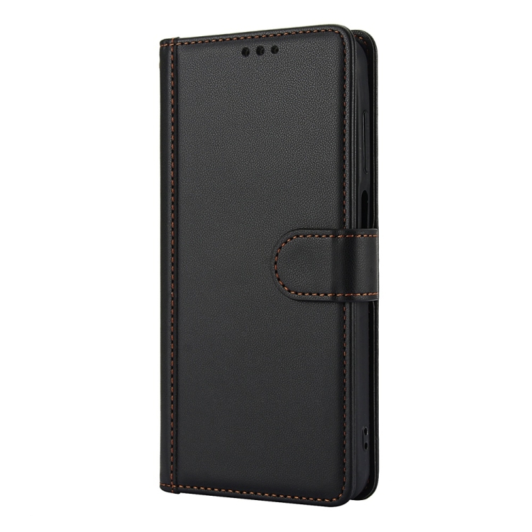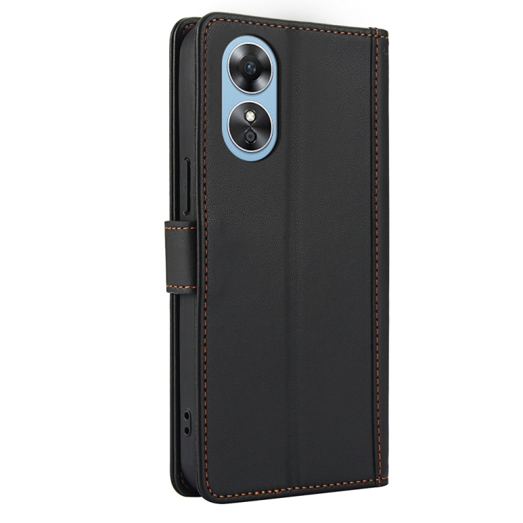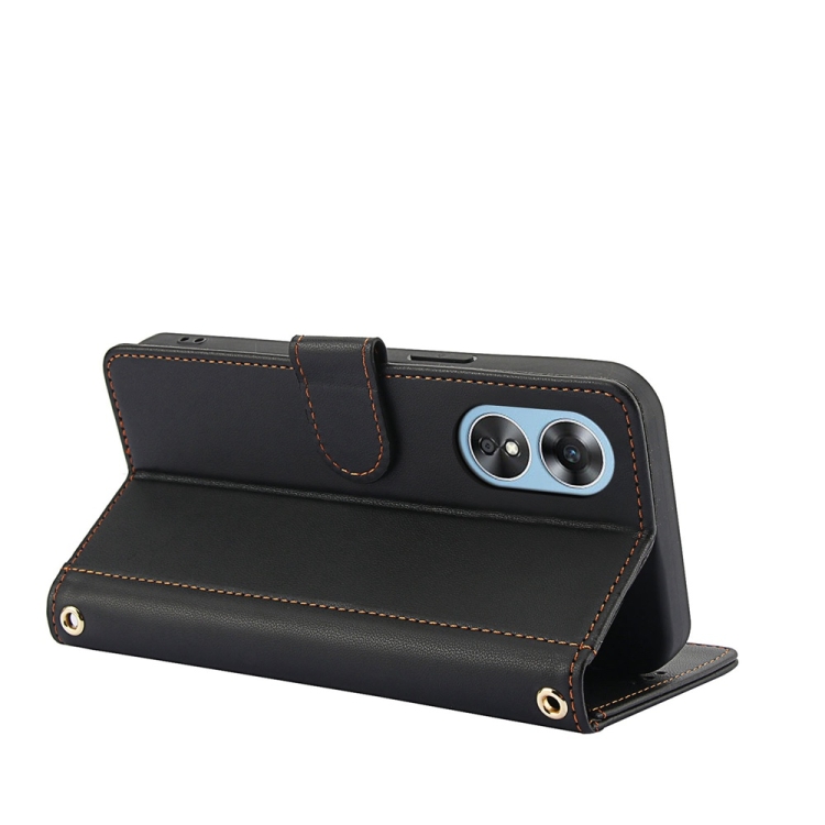 Funda de Cuero con Ranuras para Tarjetas y Doble Cordón para Oppo A17 4G Global/A17K Skin Feel Pure Color (Negro)