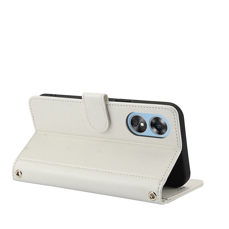Funda de Cuero con Ranuras para Tarjetas y Tacto de Piel de Color Puro para Oppo A78 4G con Cordón Doble (Blanco)
