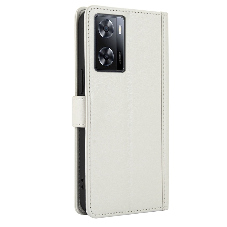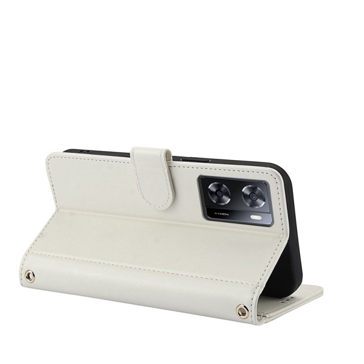 Funda de Cuero con Ranuras para Tarjetas y Tacto de Piel Global para Oppo A57 4G / A57S 4G / A57E 4G con Cordón Doble (Blanco)