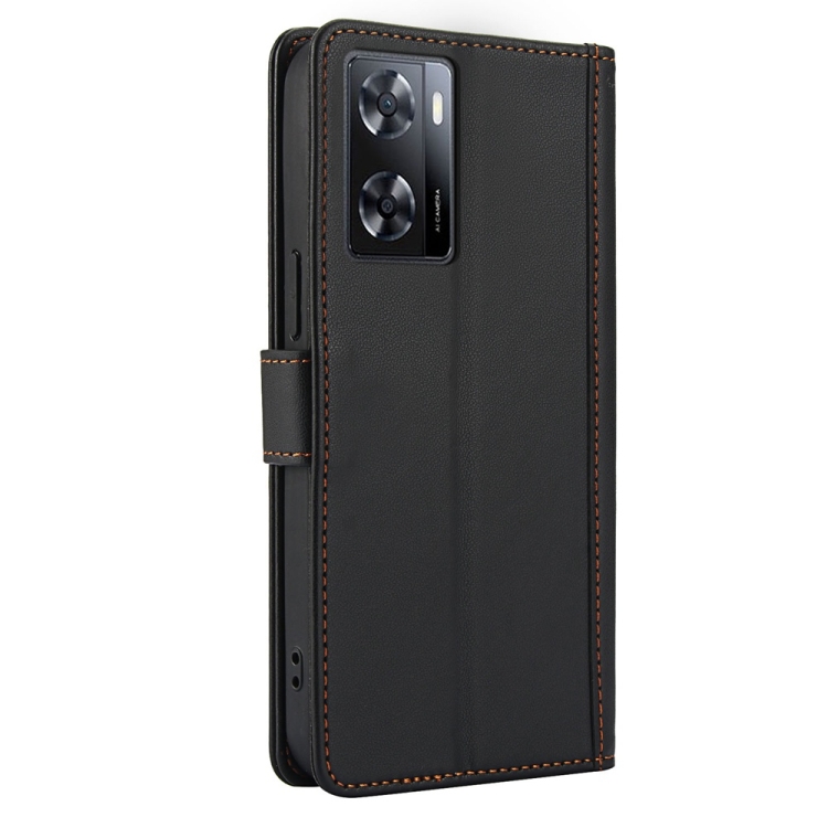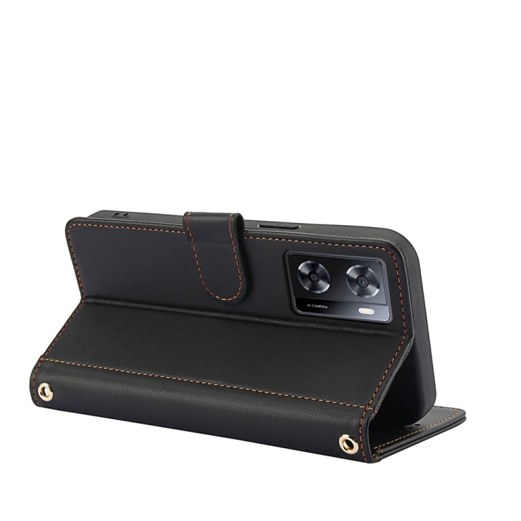Funda de Cuero con Ranuras para Tarjetas y Tacto de Piel Global para Oppo A57 4G / A57S 4G / A57E 4G con Cordón Doble (Negro)