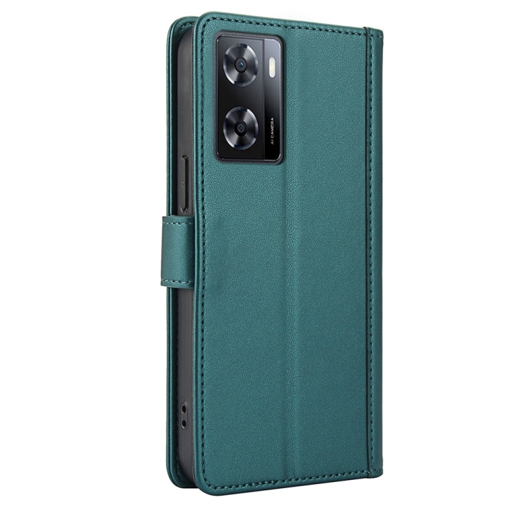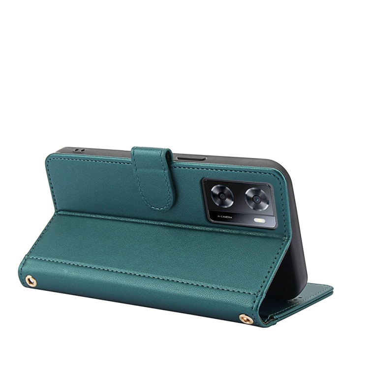 Funda de Cuero con Ranuras para Tarjetas y Tacto de Piel Global para Oppo A57 4G / A57S 4G / A57E 4G con Cordón Doble (Verde)