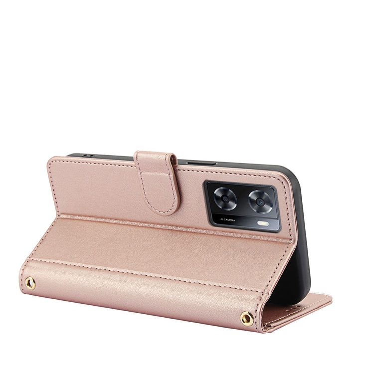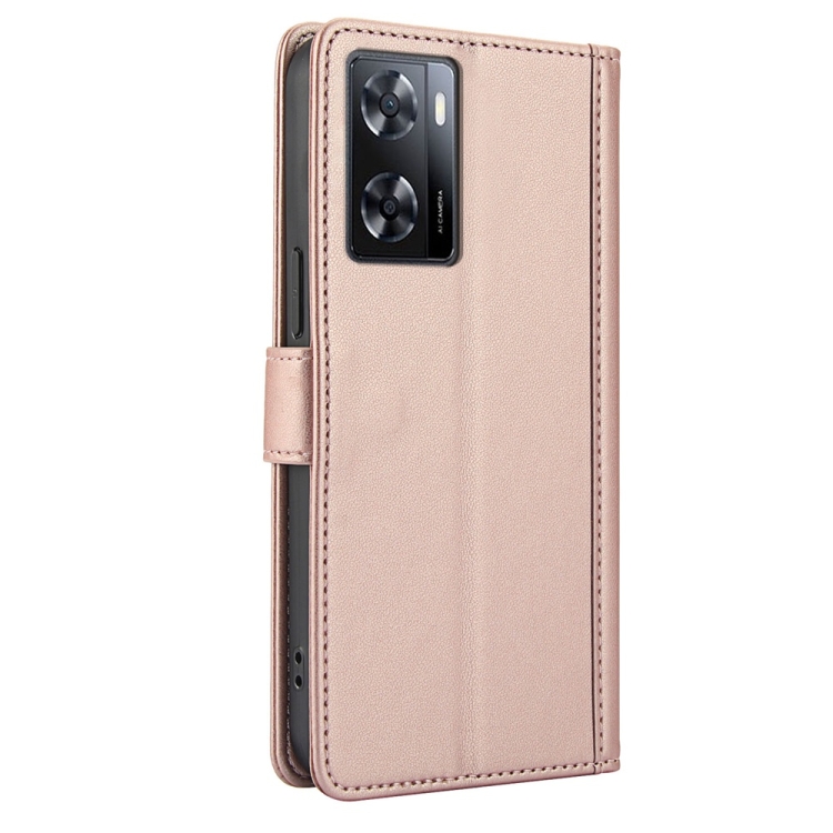 Funda de Cuero con Ranuras para Tarjetas y Tacto de Piel Global para Oppo A57 4G / A57S 4G / A57E 4G (Oro Rosa)