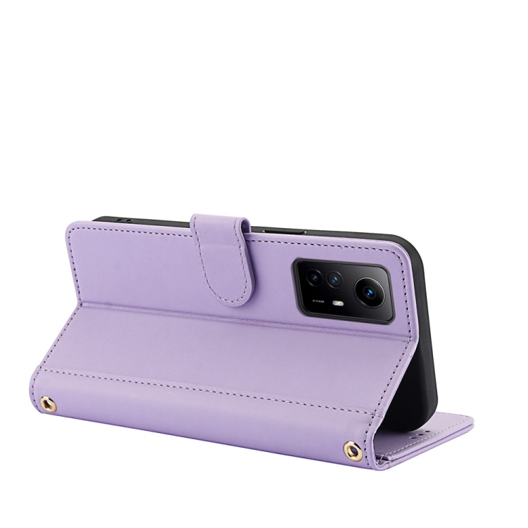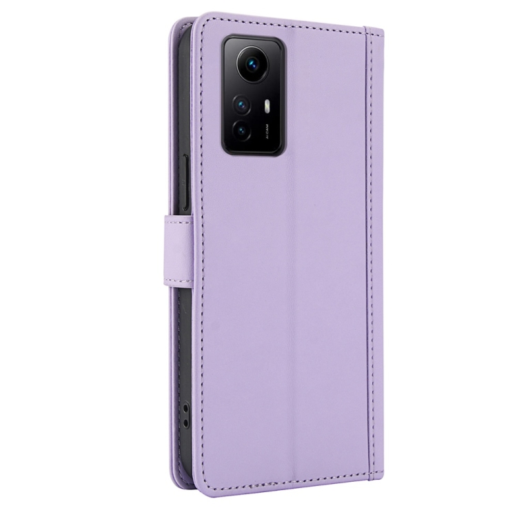 Funda de Cuero con Ranuras para Tarjetas y Tacto de Piel Global para Redmi Note 11 4G/Note 12S 4G con Cordón Doble (Morado)