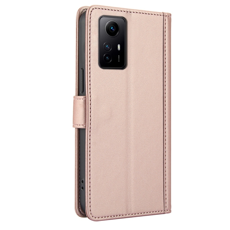 Funda de Cuero con Ranuras para Tarjetas y Tacto de Piel Global para Redmi Note 11 4G/Note 12S 4G con Cordón Doble (Oro Rosa)