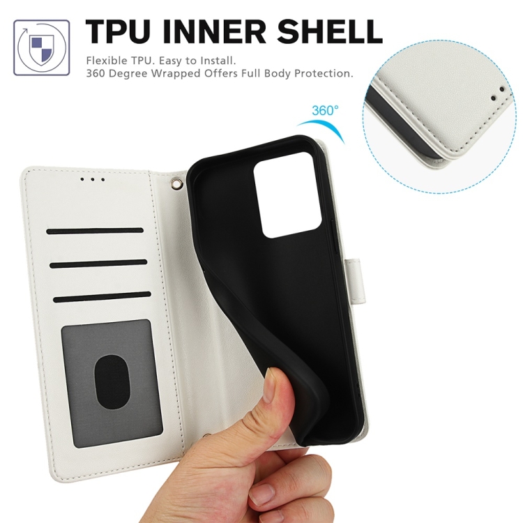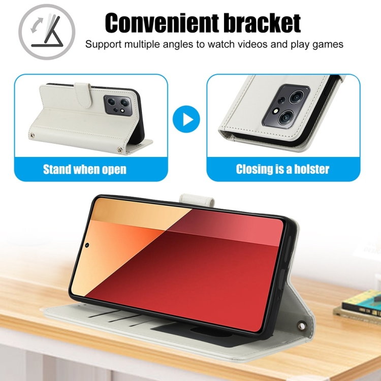 Funda de Cuero con Ranuras para Tarjetas y Tacto de Piel Global para Redmi Note 12 4G con Cordón Doble (Blanco)