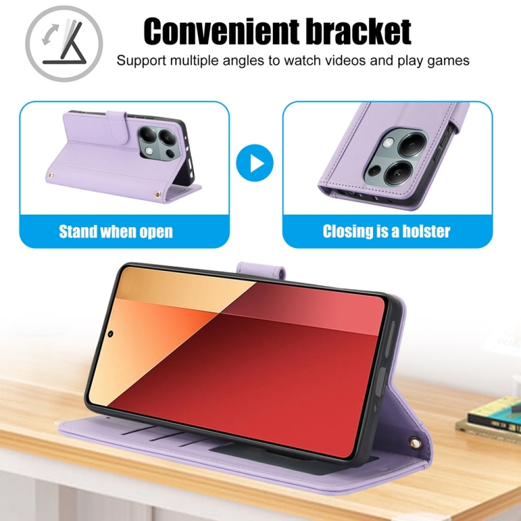 Funda de Cuero con Ranuras para Tarjetas y Tacto de Piel Global para Redmi Note 13 5G con Cordón Doble (Morado)