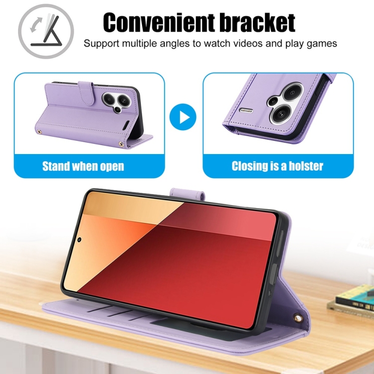 Funda de Cuero con Ranuras para Tarjetas y Tacto de Piel Global para Redmi Note 13 Pro+ 5G con Cordón Doble (Morado)