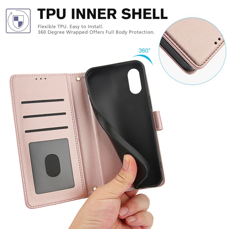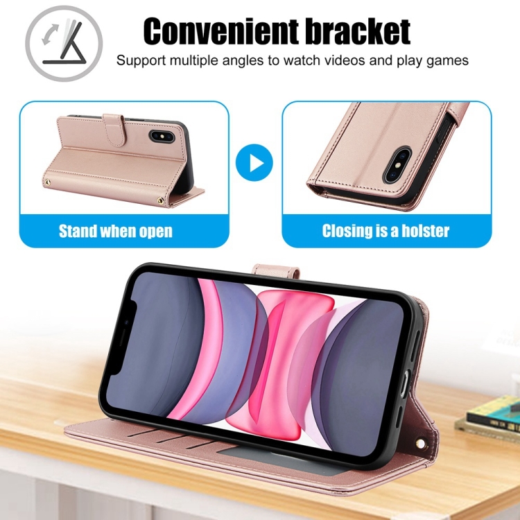 Funda de Cuero para iPhone Xs Max con Ranuras para Tarjetas y Cordón Doble (Oro Rosa)