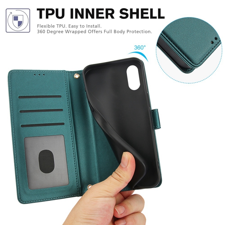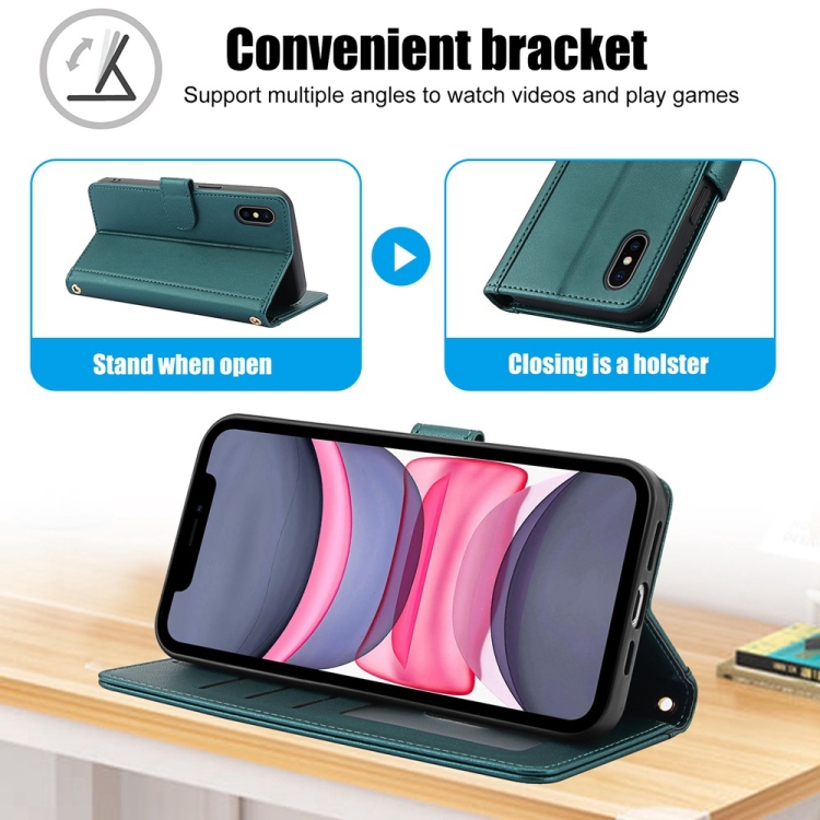 Funda de Cuero para iPhone Xs Max con Ranuras para Tarjetas y Cordón Doble (Verde)