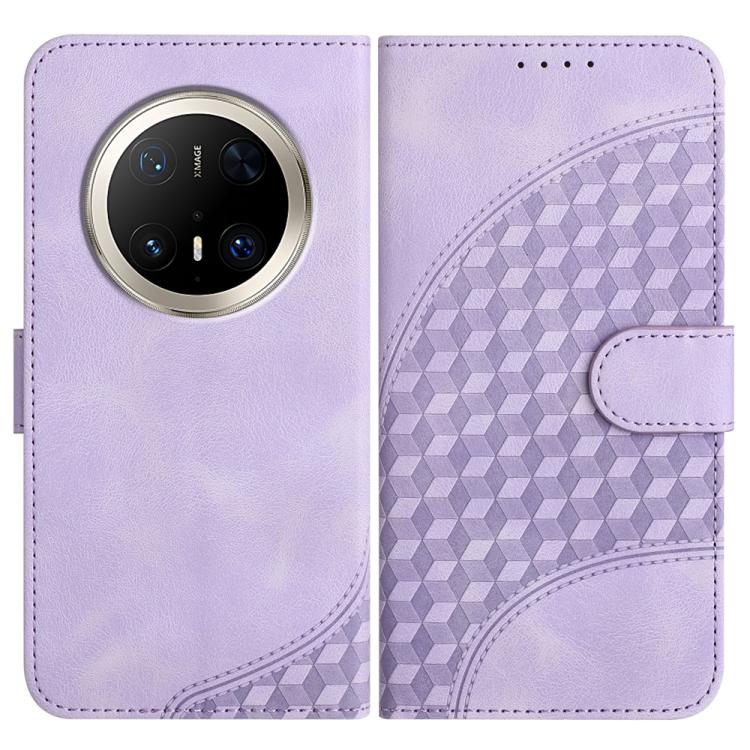Funda de Cuero con Relieve Cabeza de Elefante para Huawei Mate 70 Pro y Mate 70 Pro+ con Cordón (Morado Claro)