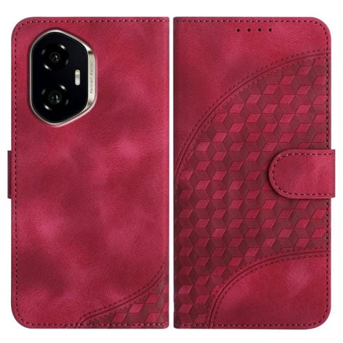 Funda de Cuero con Relieve Cabeza de Elefante para Honor 300 con Cordón (Rosa Rojo)
