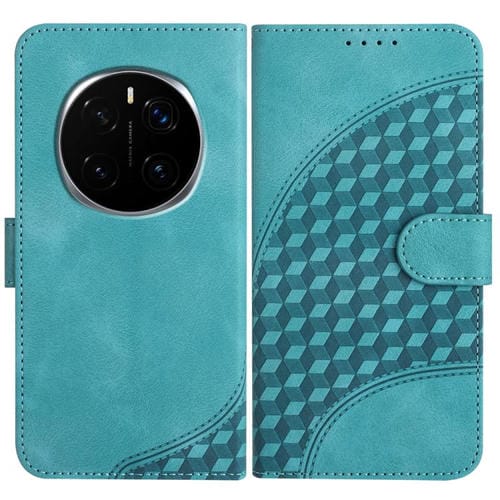 Funda de Cuero con Relieve Cabeza de Elefante para Honor Magic7 Pro con Cordón (Azul Claro)