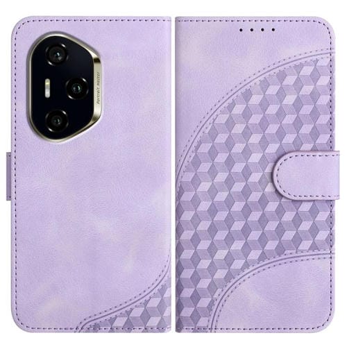 Funda de Cuero con Relieve de Cabeza de Elefante para Honor 300 Pro y 300 Ultra con Cordón (Morado Claro)