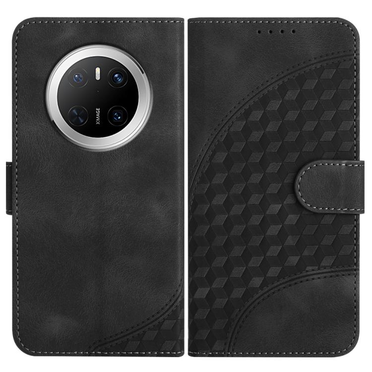 Funda de Cuero Huawei Mate 70 con Relieve de Cabeza de Elefante y Cordón (Negro)