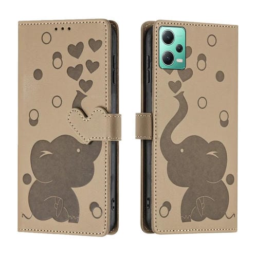 Funda de Cuero con Relieve de Elefante de Dibujos Animados para Redmi Note 12 5G (Caqui)