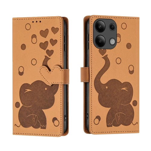 Funda de Cuero con Relieve de Elefante de Dibujos Animados para Redmi Note 13 Pro 4G (Amarillo)