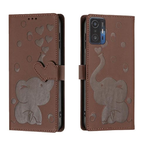 Funda de Cuero con Relieve de Elefante de Dibujos Animados para Xiaomi 11T/11T Pro (Marrón)