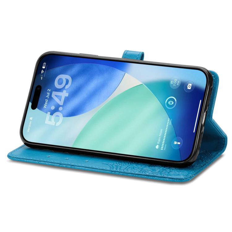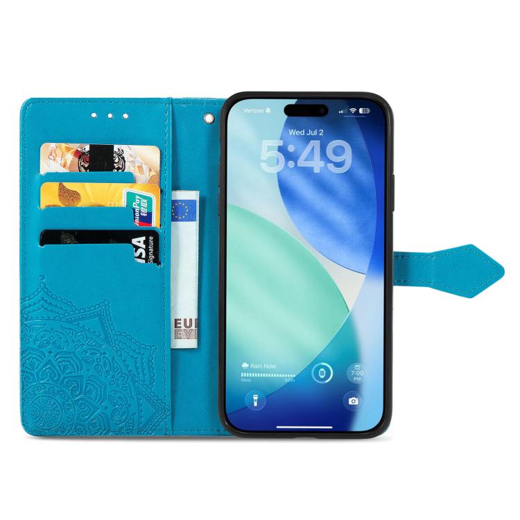 Funda de cuero con relieve de flor de mandala para iPhone 17 Pro Max (azul)