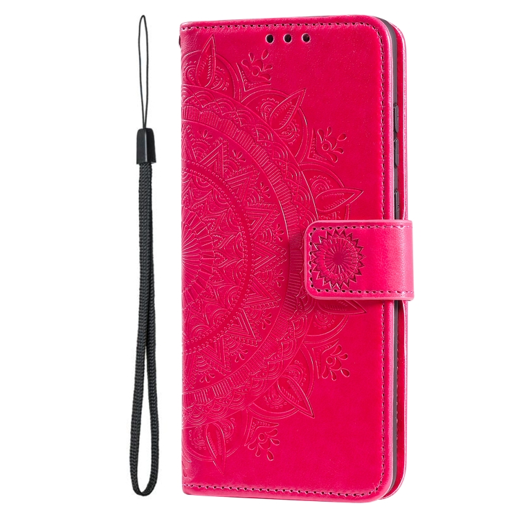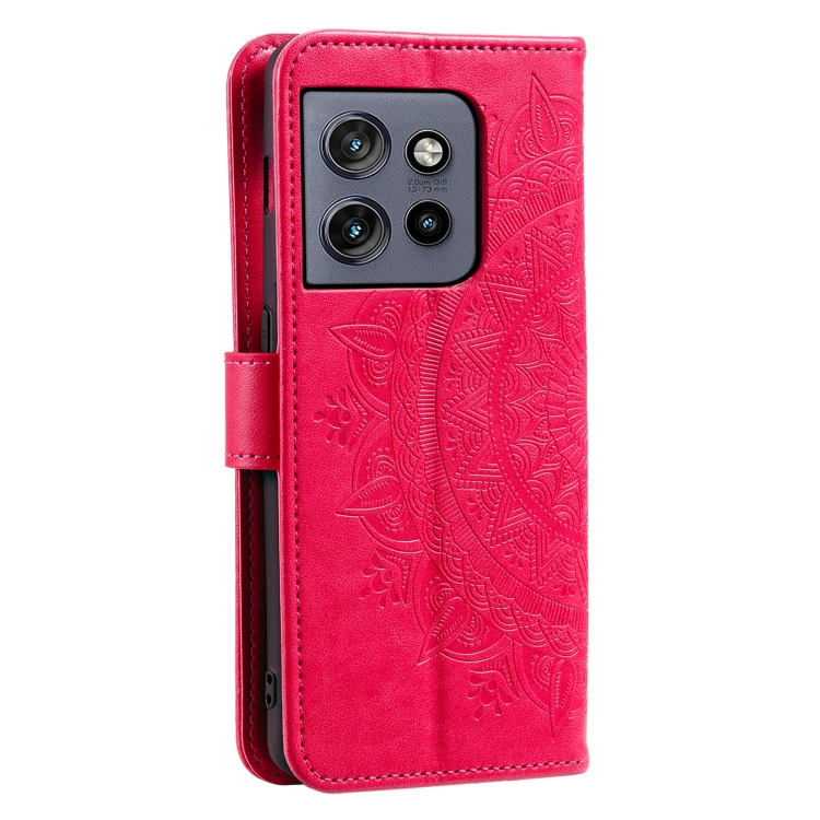 Funda de Cuero con Relieve Flor de Tótem para Motorola Edge 50 Neo con Cordón (Rojo)