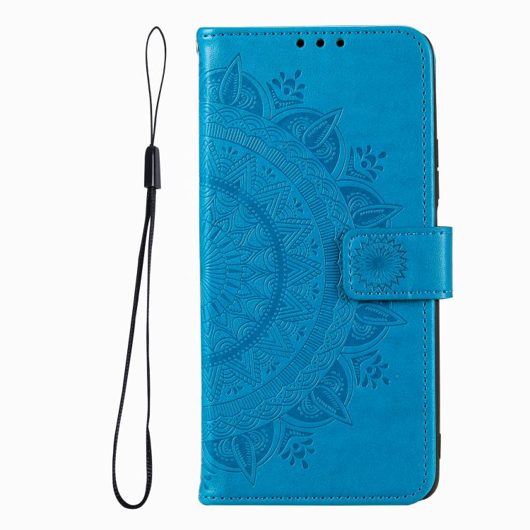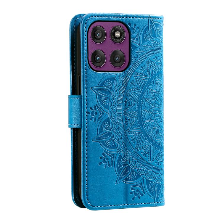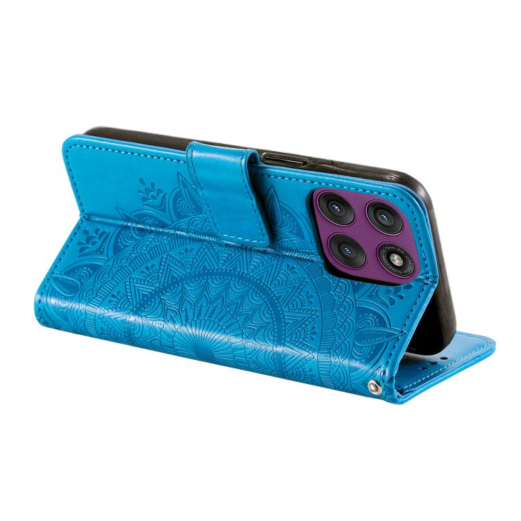 Funda de cuero con relieve de flor tótem y cordón para Motorola Edge 60 Pro (azul)